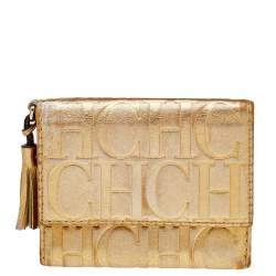 Carolina Herrera Monogram Embossed Leather Compact Wallet