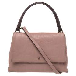 Carolina Herrera Pink/Beige Leather Andy Satchel