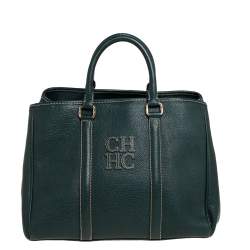 Carolina Herrera Dark Brown Monogram Embossed Leather Andy Boston Bag