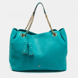 Carolina Herrera Green Monogram Embossed Leather Matteo Tote