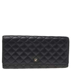 Carolina Herrera Black Quilted Leather Trifold Wallet