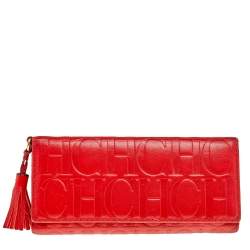 Carolina Herrera Burgundy Leather Flap Continental Wallet
