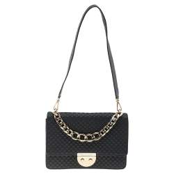 Carolina Herrera Black Leather Flap Shoulder Bag