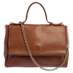 Carolina Herrera White/Brown Leather Monogram Embossed Andy Satchel