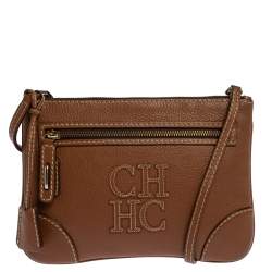 Carolina Herrera Tri Color Monogram Coated Canvas and Leather Crossbody Bag