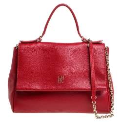 Carolina Herrera Red Monogram Leather Audrey Shoulder Bag