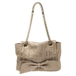 Carolina Herrera Metallic Bronze Monogram Leather Audrey Shoulder Bag