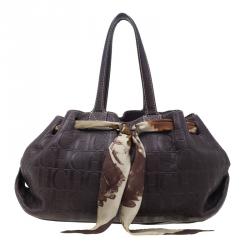 Carolina Herrera Brown Monogram Embossed Scarf Tote