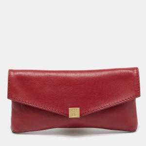 Carolina Herrera Red Logo Embossed Leather Insignia Top Handle Bag