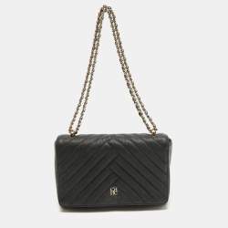 Carolina Herrera Black Quilted Leather Tassel Crossbody Bag