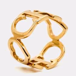 Carolina Herrera CH Logo Enamel Gold Tone Band Ring EU 54