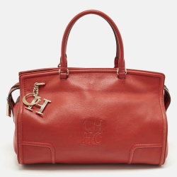 Carolina Herrera Red Leather CH Logo Charm Tote