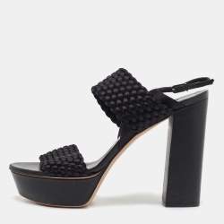 Casadei Black Woven Satin and Leather Platform Ankle Strap Sandals Size 36