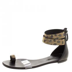 Casadei Black Cut Out Suede Crystal Embellished Flat Thong Sandals Size 36
