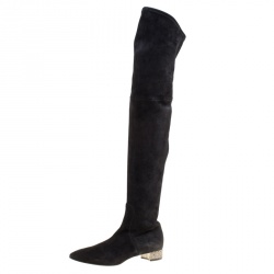 Casadei Black Leather Blade Over The Knee Pointed Toe Boots Size 37
