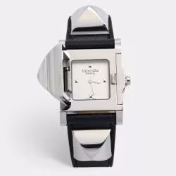 Hermes Silver Stainless Steel Leather Medor W028321WW00 Women's Wristwatch 23 mm