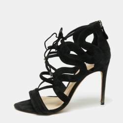 Givenchy Black Leather and Suede Shark Lock Ankle Strap Sandals Size 36