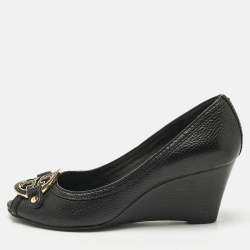 Christian Louboutin Black Leather Criss Cross Platform Pumps Size 37.5