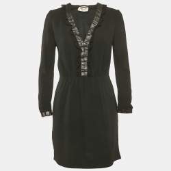 Givenchy Black Gabardine & Chiffon Pleated Mini Skirt S