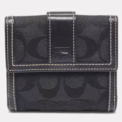 Coach Black Signature Canvas and Leather Flap Compact Wallet