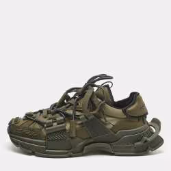 Dolce & Gabbana Green Leather and Nylon Space Lace Up Sneakers Size 40