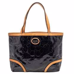 Coach Black/Beige Patent Leather Peyton Tote