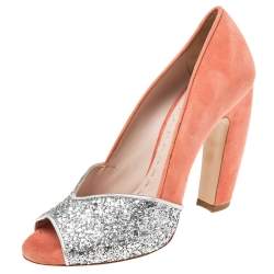 Miu Miu Beige Patent Leather Bow Peep Toe Platform Pumps Size 39