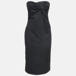 D&G Grey Pinstripe Gabardine Draped Detail Strapless Mini Dress M