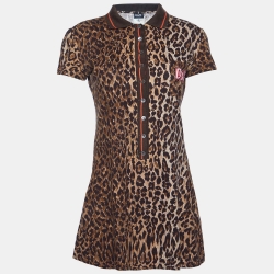 D&G Brown Leopard Print Cotton Pique Polo Dress M