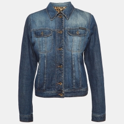 D&G Blue Denim Leather Trim Detail Zip Front Jacket M