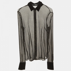 D&G Black Satin Button Front Knit Sleeve Shirt M