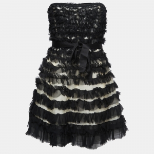 D&G Purple Floral Printed Silk Chiffon Tie Detail Strapless Mini Dress S
