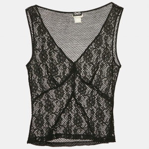 D&G Black Silk and Lurex Knit Sleeveless Top S