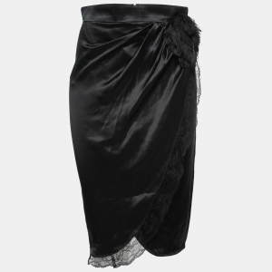 D&G Black Floral Applique Satin Beaded Sleeveless Short Dress S
