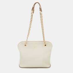 DKNY Beige Leather Flap Chain Crossbody Bag