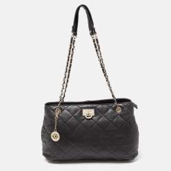 DKNY Black Quilted Leather Bucket Shoulder Bag