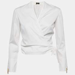 Elisabetta Franchi White Synthetic Wrap Shirt Blouse M