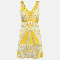 Emilio Pucci Yellow Monogrammed Macramé Cotton Sleeveless Dress M