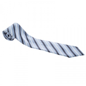 Pre Owned Ermenegildo Zegna Navy Blue and Off White Diagonal Striped Patterned Silk Jacquard Tie