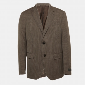 Pre Owned Ermenegildo Zegna Couture Brown Striped Wool & Cashmere Knit Oversized T-Shirt XXL