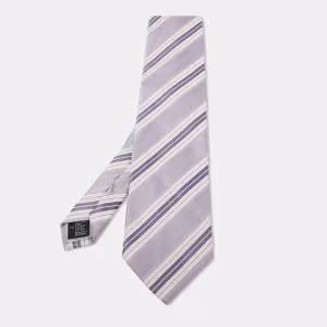 Pre Owned Ermenegildo Zegna Brown and Maroon Chevron Pattern Diagonal Striped Traditional Tie
