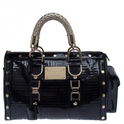 Versace Black Quilted Patent Leather Snap Out Of It Satchel