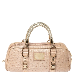 Gianni Versace Peach Quilted Ostrich Embossed Leather Bowler Bag