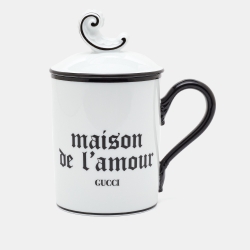 Gucci Black Maison De L'Amour Printed Porcelain Cup & Saucer Set of 2