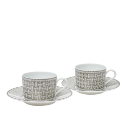Hermes Mosaique AU 24 Platinum Tea Cup And Saucer Set