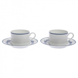 Hermes Blue Porcelain Chaine d'Ancre 4-Piece Tea Cup And Saucer Set