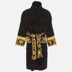 Versace Home Black Terry Baroque Belted Bathrobe M