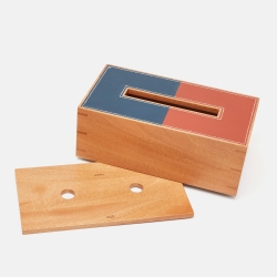 Hermès Brique /Bleu Regate Mahogany Wood and Taurillon Leather Small Pleiade Tissue Box