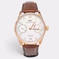 IWC Schaffhausen Silver 18K Rose Gold Alligator Leather Portuguese IW5001-01 Men's Wristwatch 42.30 mm