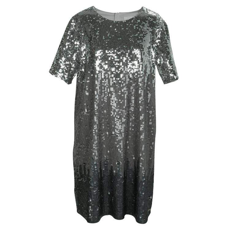 Pre Owned Chloe Silver Ombré All Over Sequin Embellished Short Sleeve Dress 10 Yrs